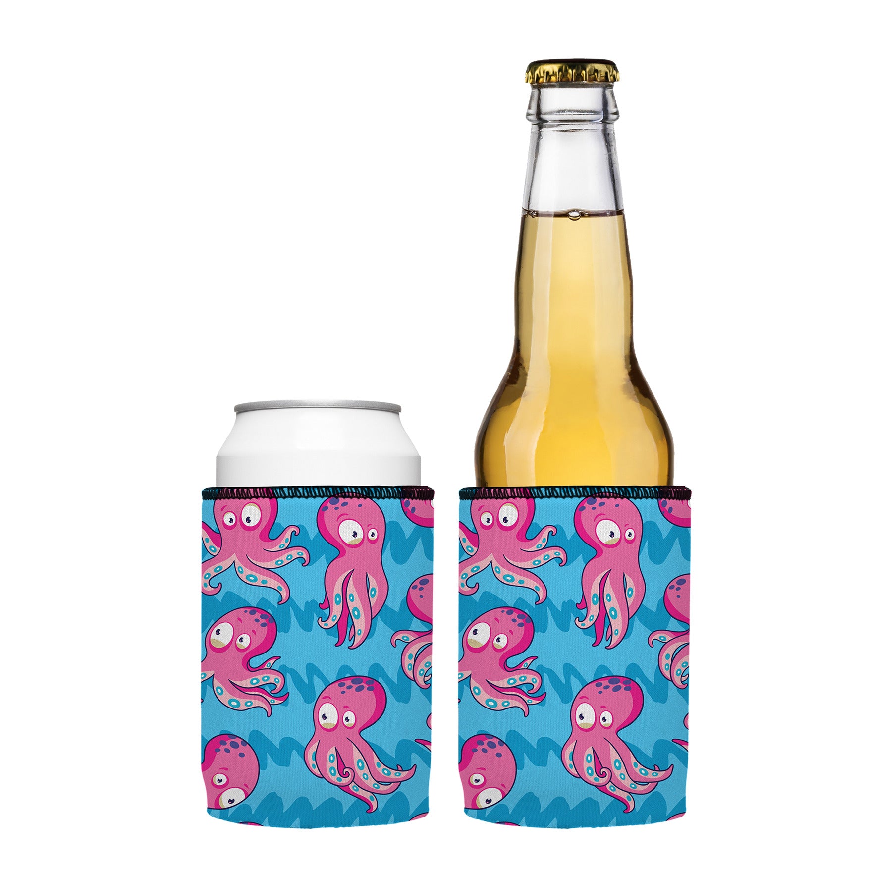 Dive into a sea of style and keep your beverages frosty with the 2-Pack Stubbyz Pink Octopus Stubby Coolers! This stunning set includes two of the same whimsical design, each showcasing the captivating charm of one of the ocean's most enchanting creatures, adorned with vibrant pink hues that are sure to make a splash at any gathering.